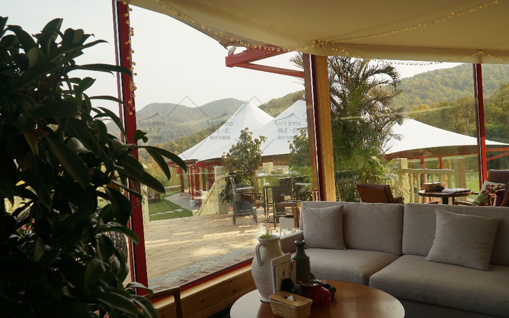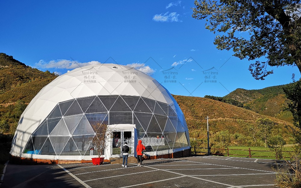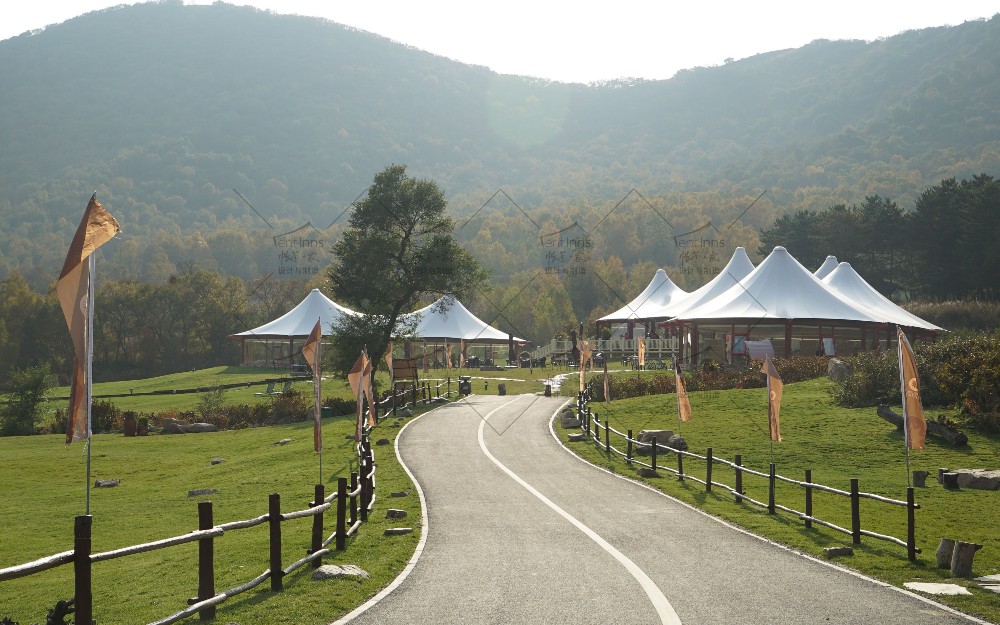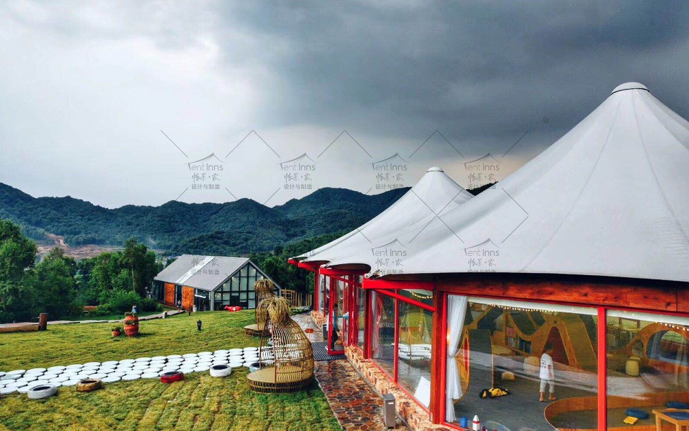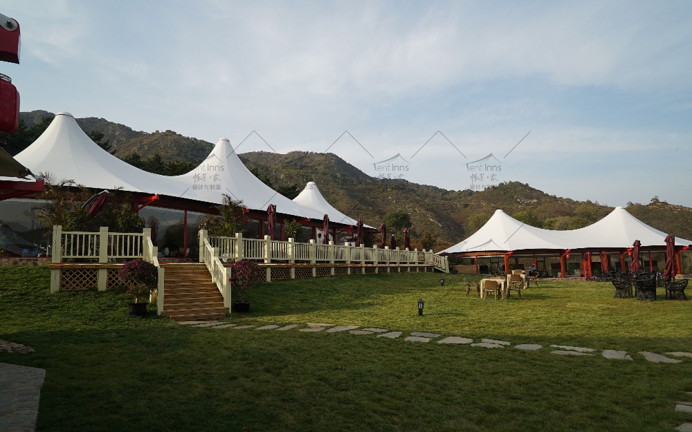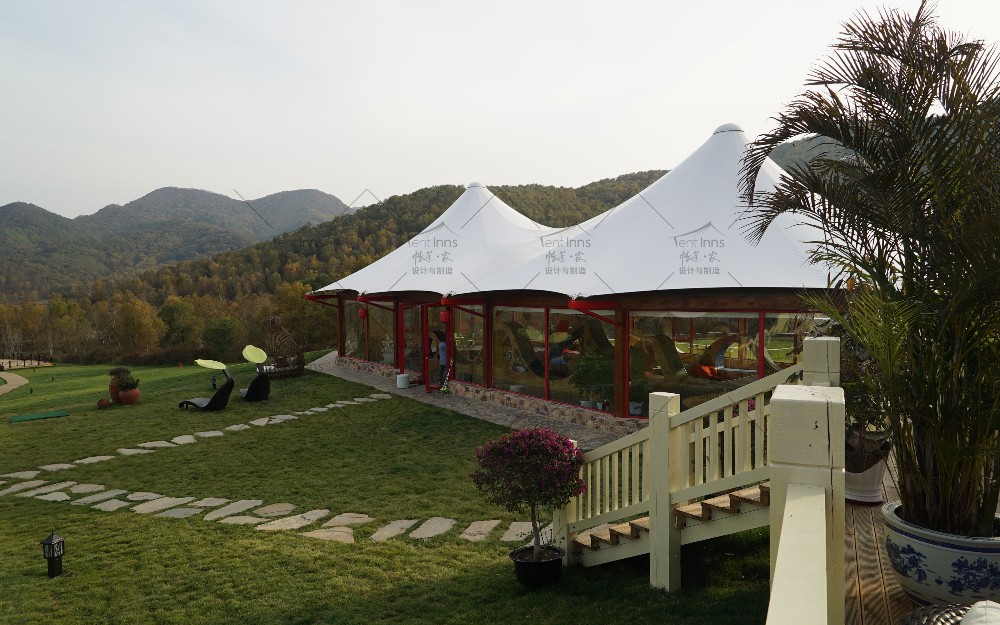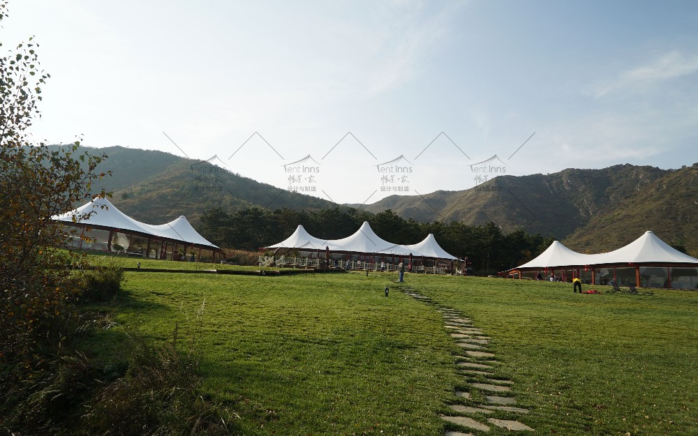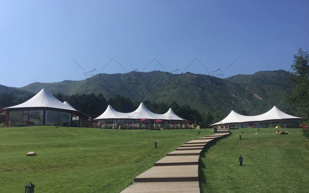 这是帐篷家在2015年为奥伦达旅游开发有限公司在北京延庆海坨山谷设计和生产制造安装的大型抗寒保温帐篷。所有帐篷可零下30度温暖使用,产品包括室内可用面积400平米的帝王三峰和300平米的帝王双峰帐篷。帐篷家产品作为奥伦达海坨山谷标志性的三大景观构筑物矗立至今,已经第9个年头了,亲历了海坨山谷的开发建设全过程,为海坨山谷瑞士小镇的发展立下了汗马功劳。帐篷家的产品承载着海坨山谷地产销售中心,咖啡厅,餐厅,儿童图书馆,骑行俱乐部等多重功能。帐篷家产品屹立至今已经9年多,常年抵御冬季超过8级的狂风和大雪的肆虐,任凭夏季暴雨的侵袭和阳光的暴晒,帐篷家的经典帝王系列产品至今依然安全屹立,洁净如新。帐篷家欢迎您亲临现场考察参观。